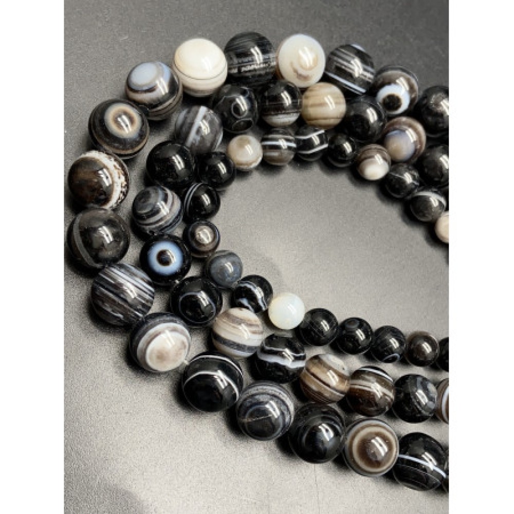 Каменные бусины, Агат Чёрный Глазковый, шарик гладкий, 6 мм, длина нити 38 см