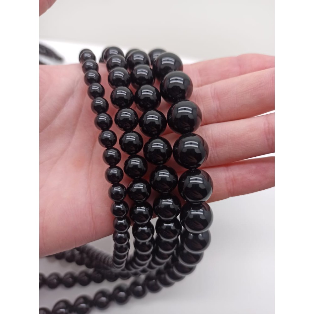 Технические характеристики Каменные бусины, Агат, чёрный, шарик гладкий, 12 мм, длина нити 38 см