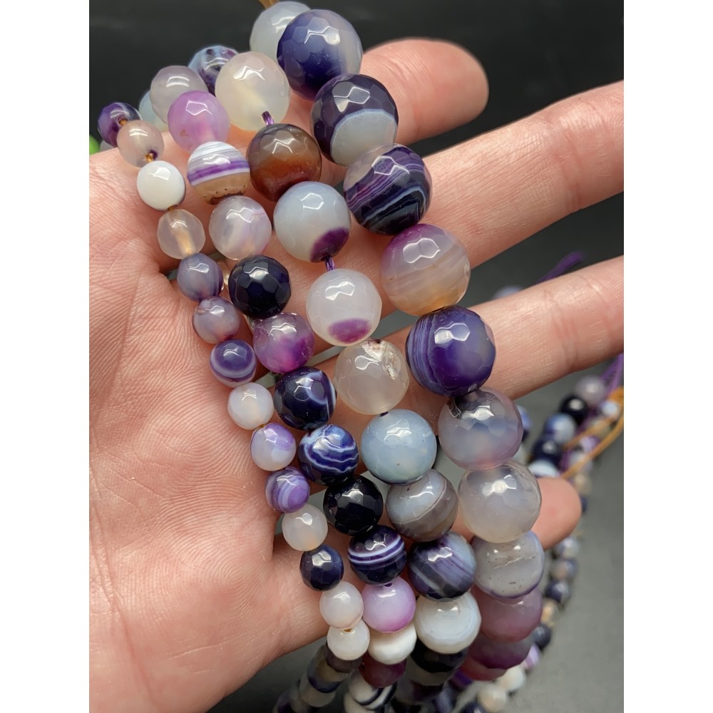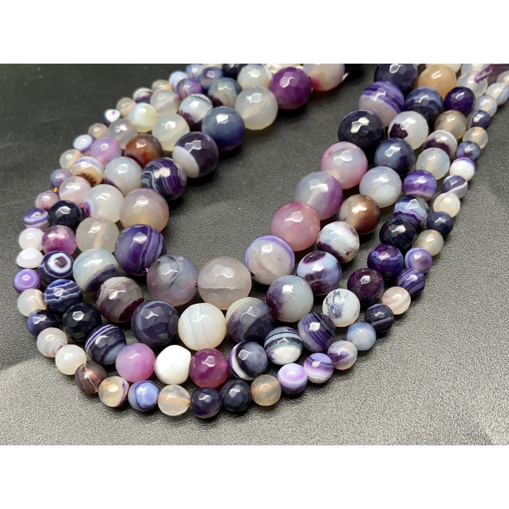 • Каменные бусины, Агат, тонированный, бело-фиолетовый, шарик огранка, 12 мм, длина нити 38 см
