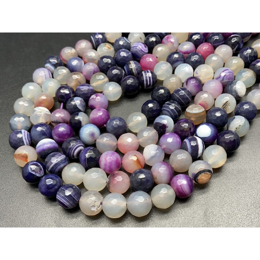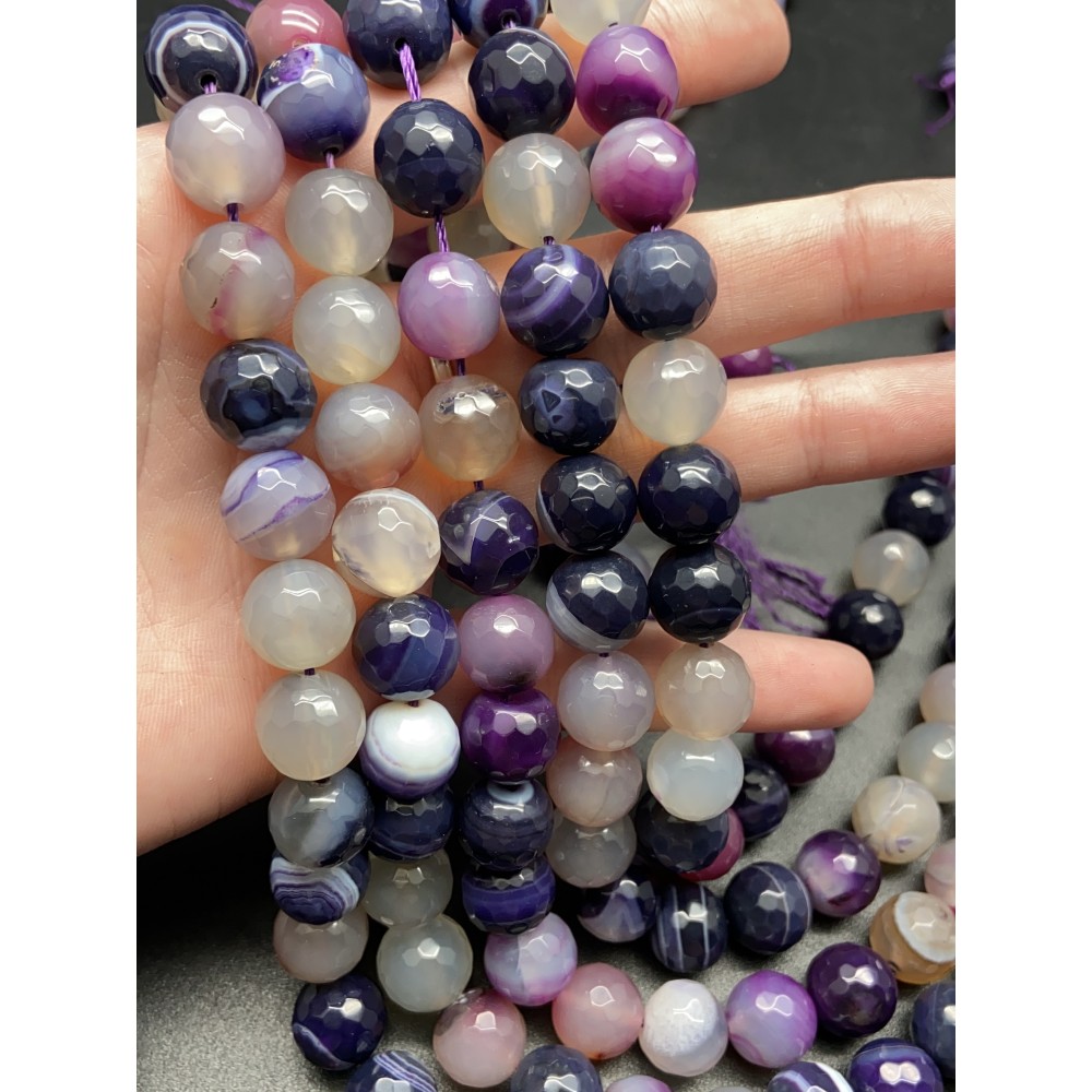• Каменные бусины, Агат, тонированный, фиолетовый, шарик огранка, 12 мм, длина нити 38 см