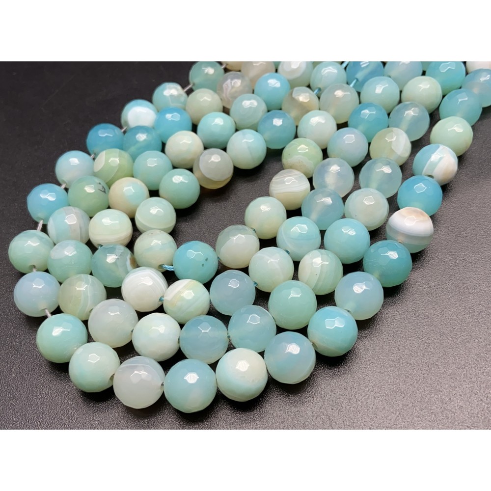• Каменные бусины, Агат, тонированный, голубой, шарик огранка, 12 мм, длина нити 38 см