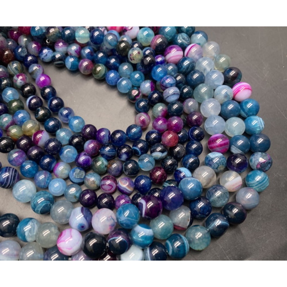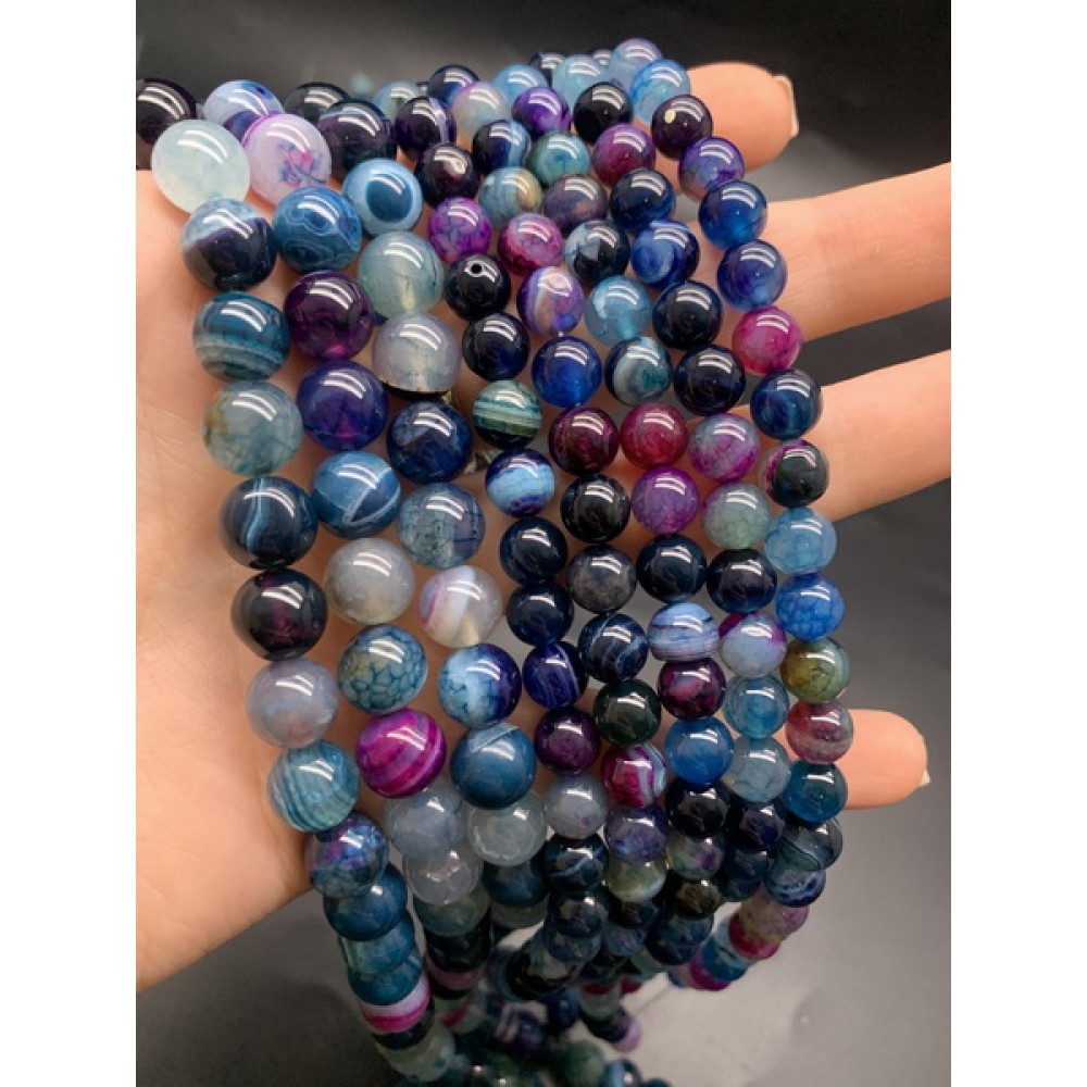 • Каменные бусины, Агат, тонированный, синий микс, шарик гладкий, 10 мм, длина нити 38 см