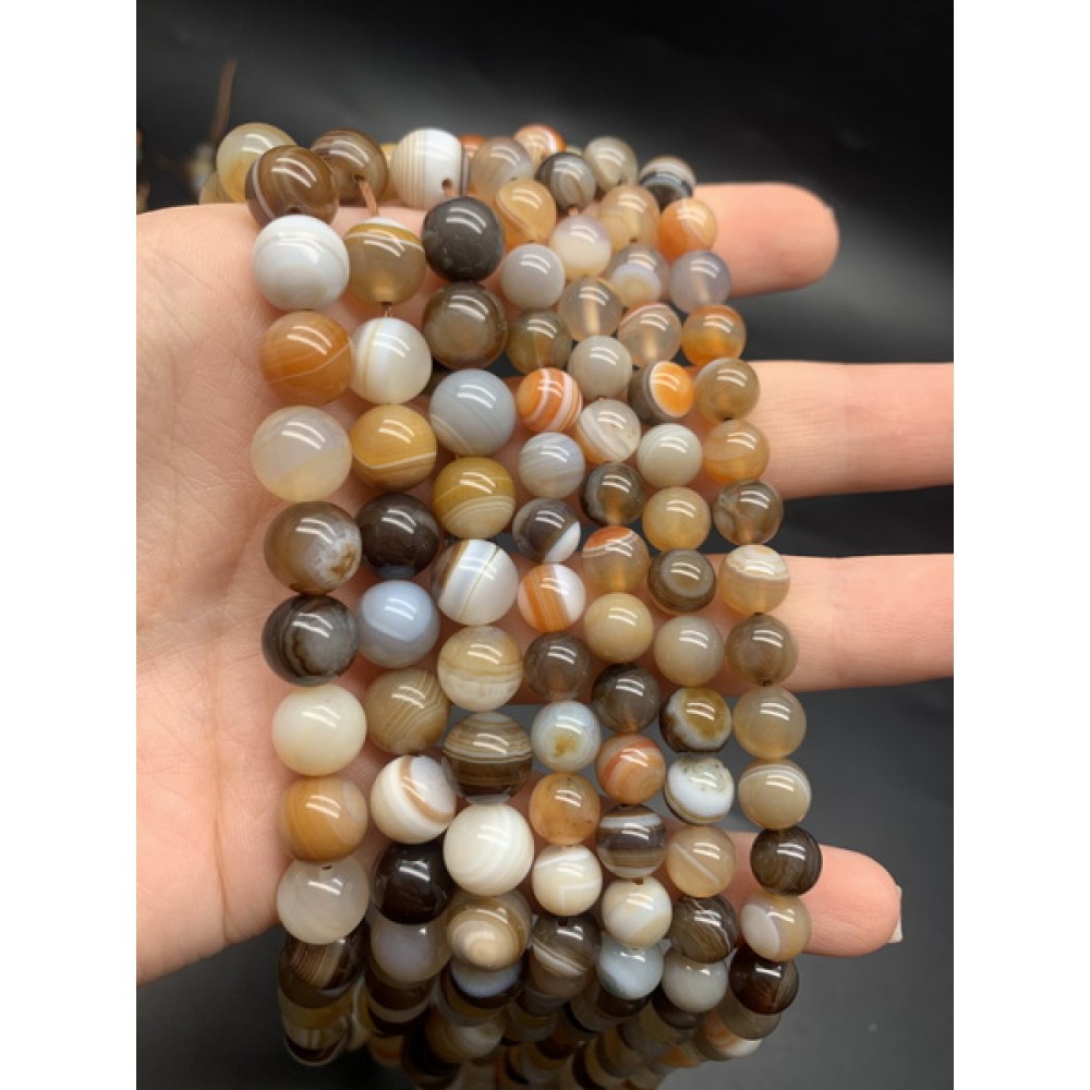 Каменные бусины, Агат, тонированный, светло-коричневый микс, шарик гладкий, 10 мм, длина нити 38 см