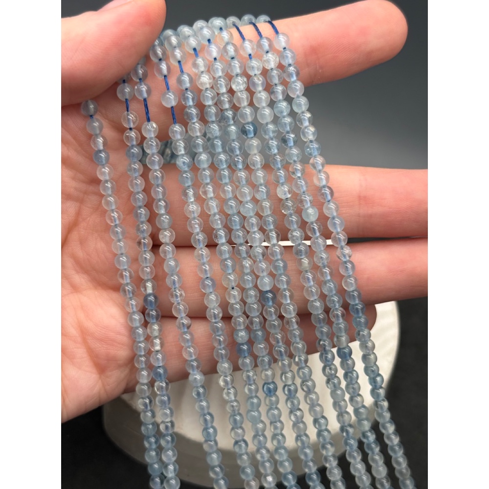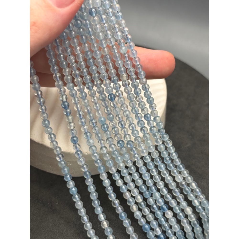 Каменные бусины, Аквамарин, голубой Берилл, шарик гладкий, 4 мм, длина нити 38 см 0 950 ₽