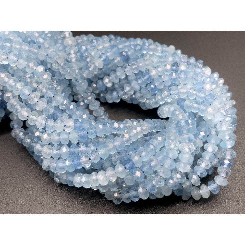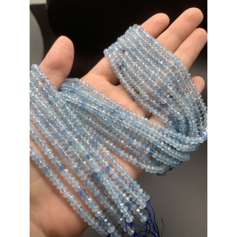 Каменные бусины, Аквамарин, Голубой берилл, люкс, рондель огранка, 2,5х4 мм, длина нити 38 см