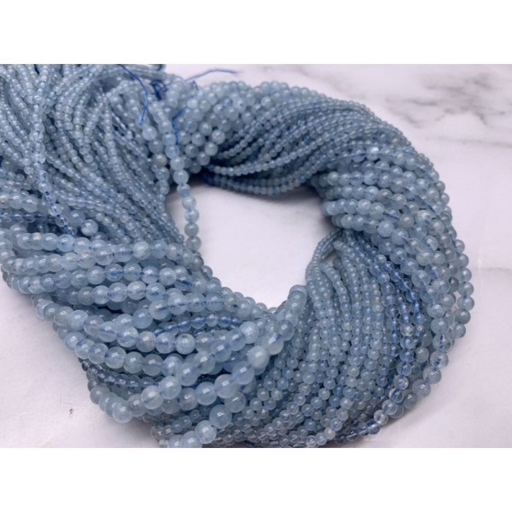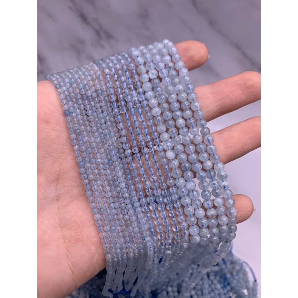 • Каменные бусины, Аквамарин, Голубой Берилл, шарик гладкий, 3 мм, длина нити 38 см