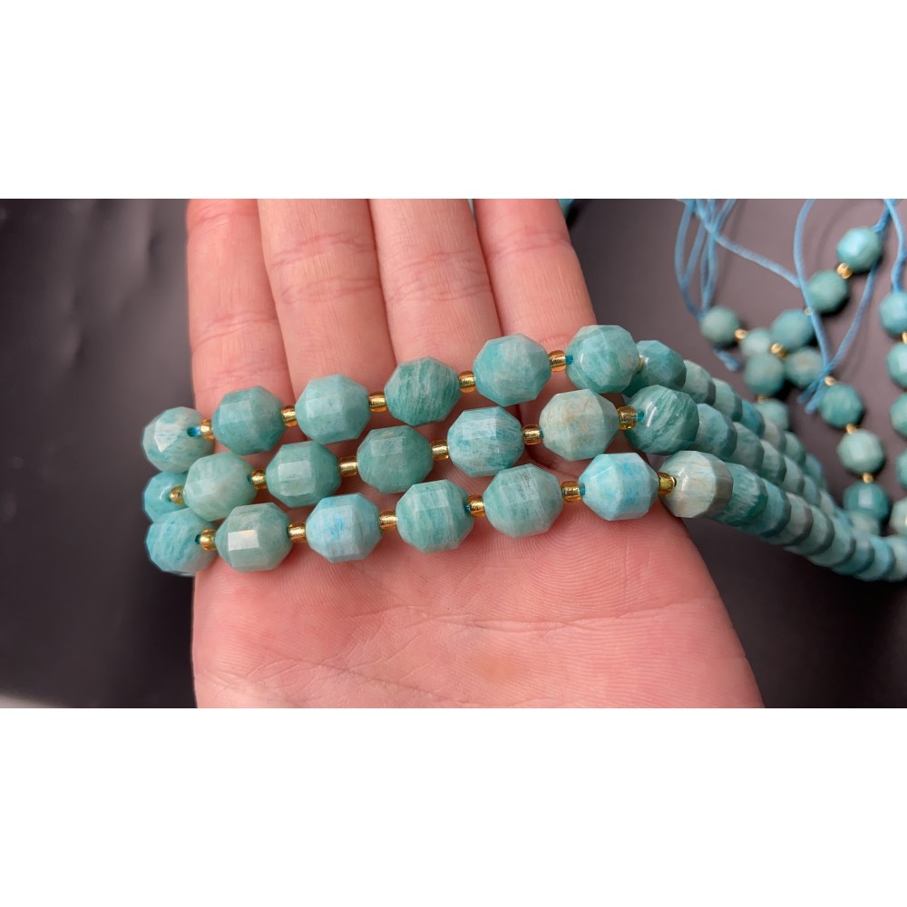 Каменные бусины, Амазонит, ювелирная огранка 10х8,5 мм, длина нити 38 см