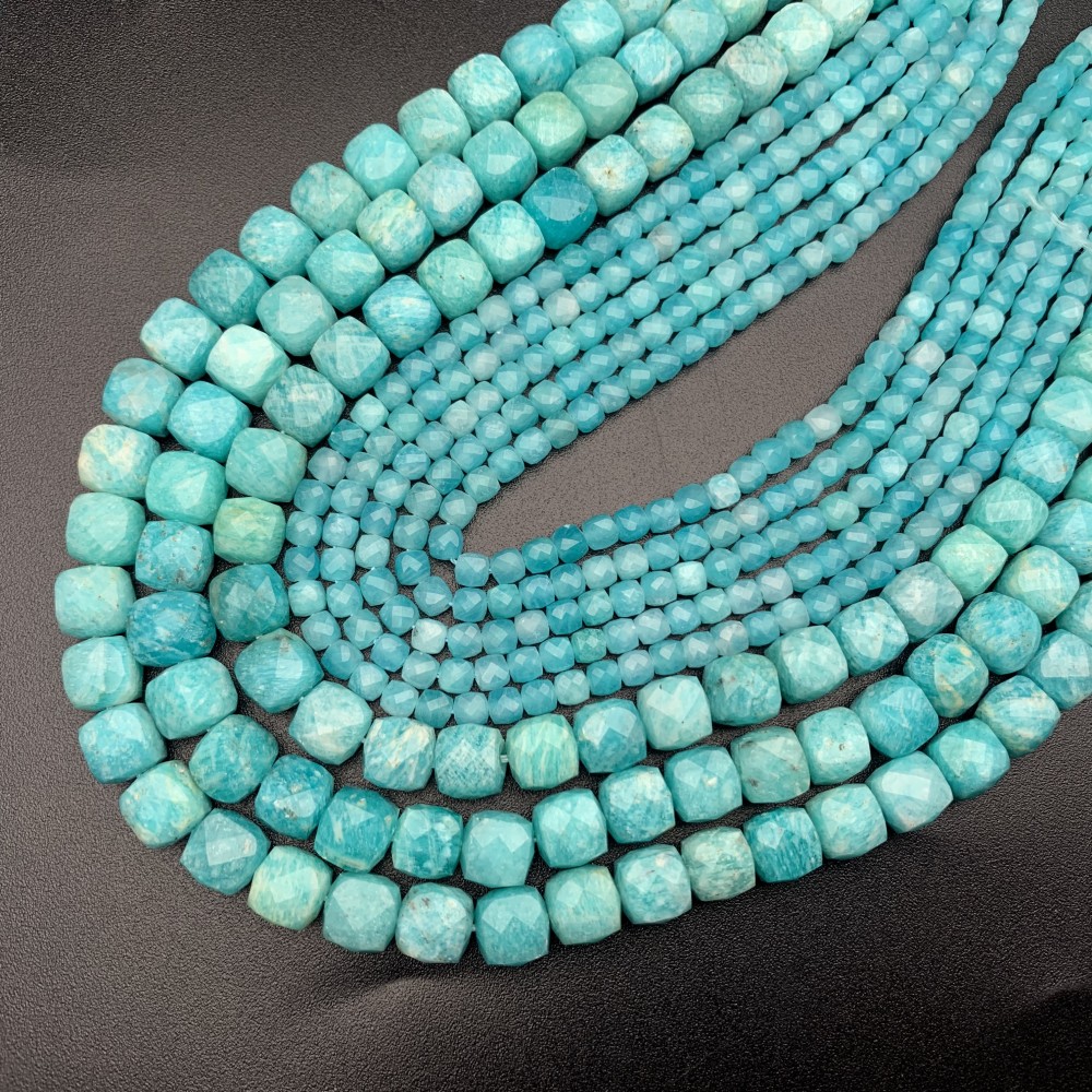 • Каменные бусины, Амазонит, кубик огранка, 7,5х7,5 мм, длина нити 19 см