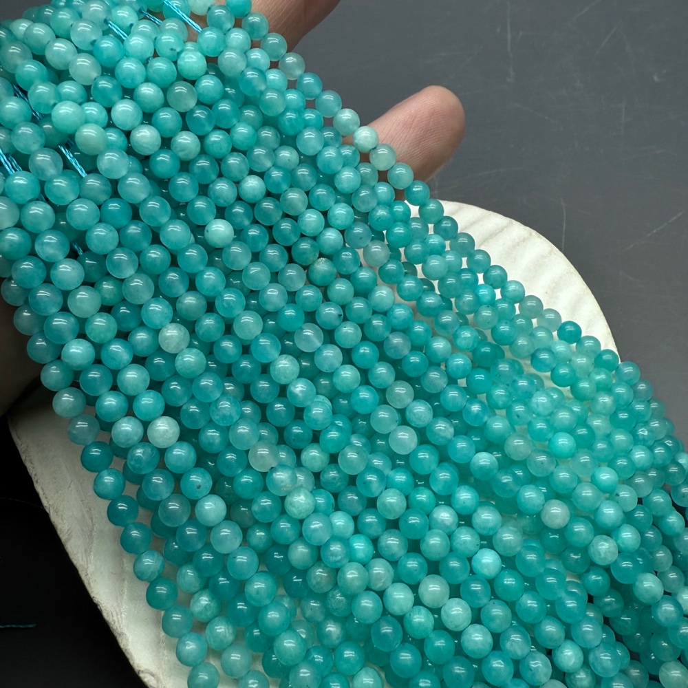 Каменные бусины, Амазонит, люкс, шарик гладкий, 4 мм, длина нити 38 см