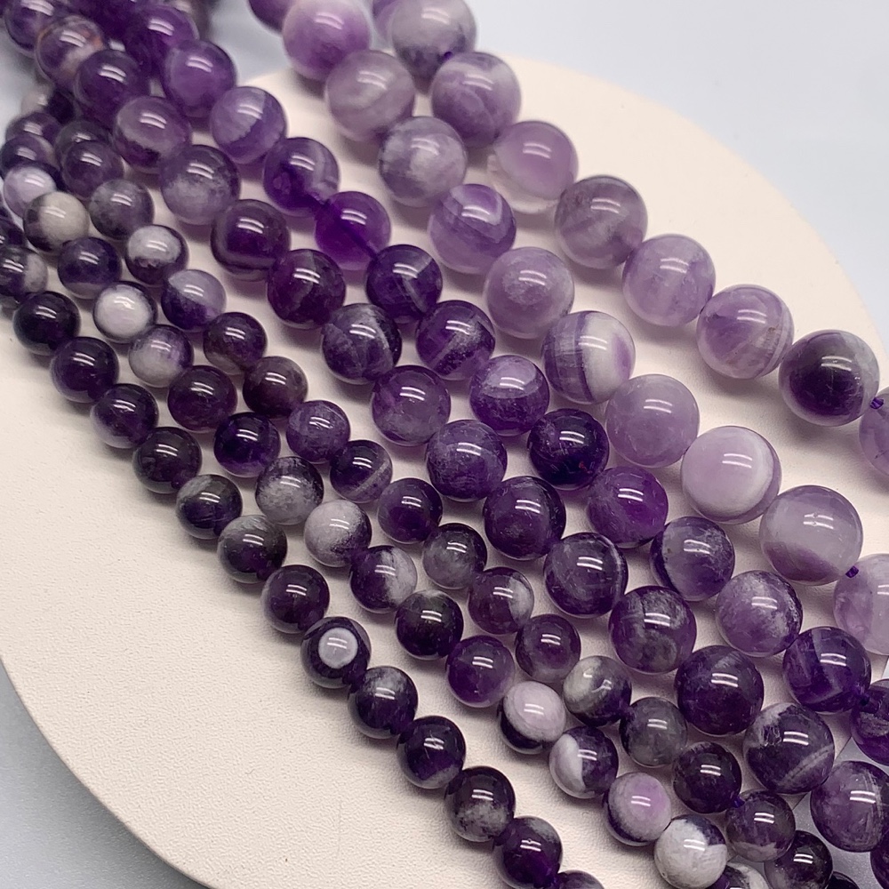Каменные бусины, Аметист с полосками, 8-8,5 мм, шарик гладкий, длина нити 38 см