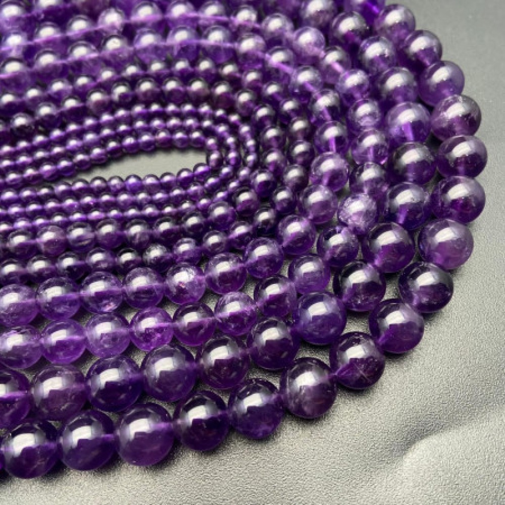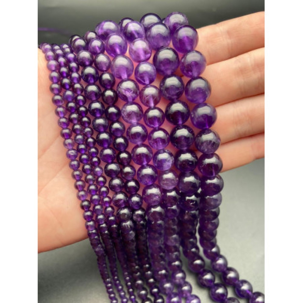 Каменные бусины, Аметист, шарик гладкий, 4 мм, длина нити 38 см