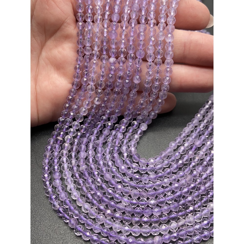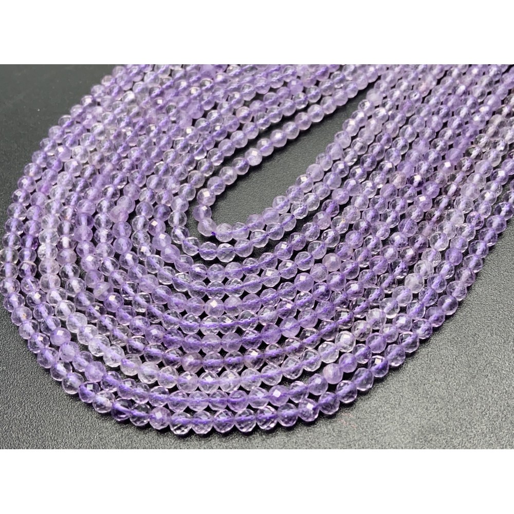 Каменные бусины, Аметист, шарик, огранка, 3 мм, длина нити 39 см