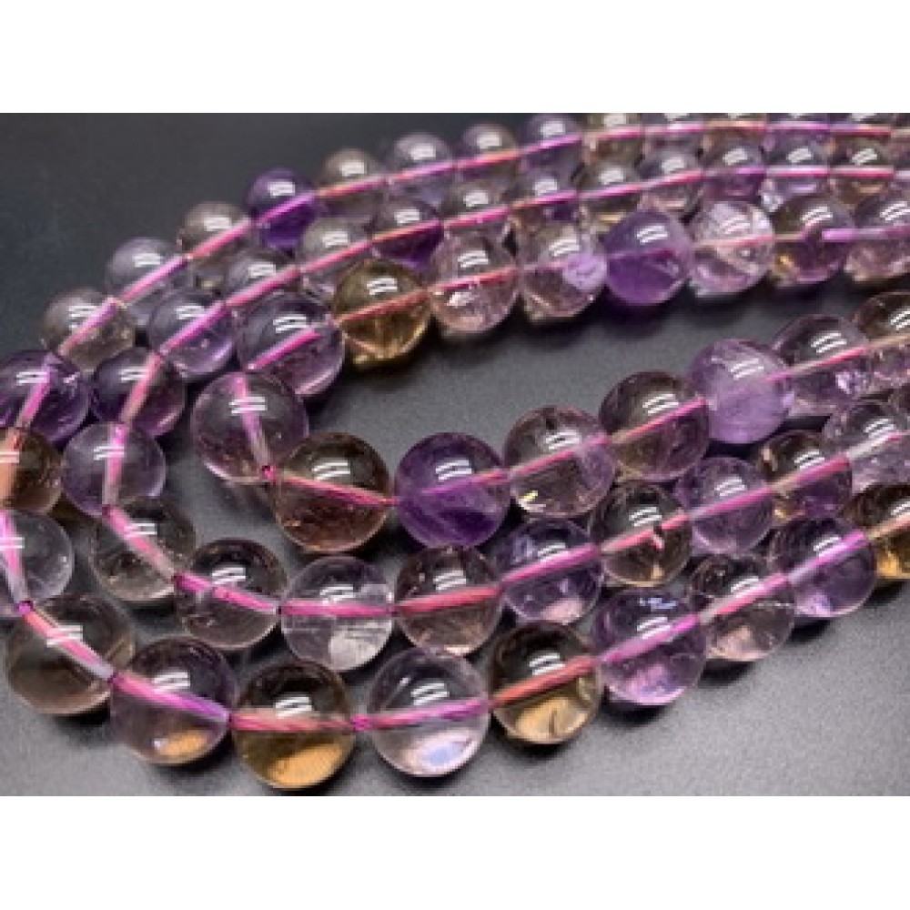 Каменные бусины, Аметрин люкс, шарик гладкий, 10 мм, длина нити 38 см