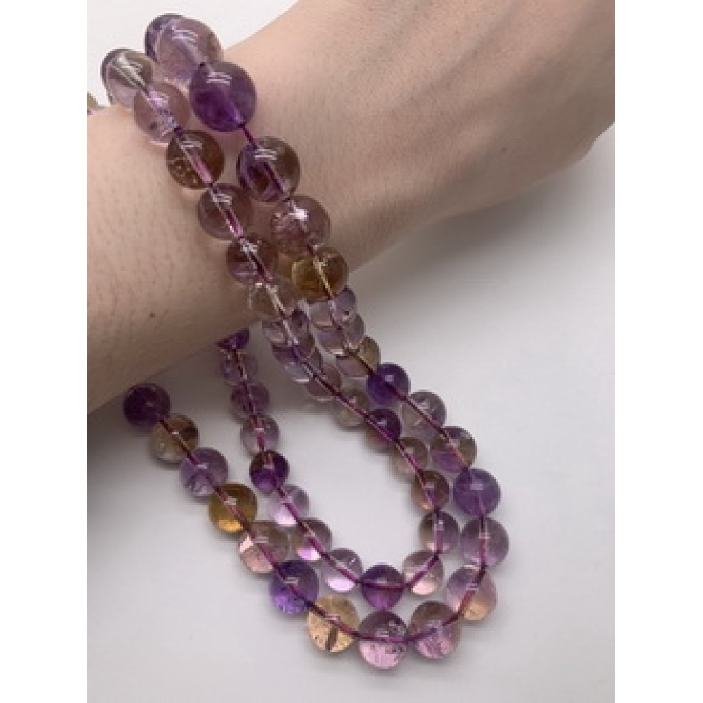 • Каменные бусины, Аметрин люкс, внутреннее свечение, высокая степень прозрачности, шарик гладкий, 12 мм, длина нити 19 см