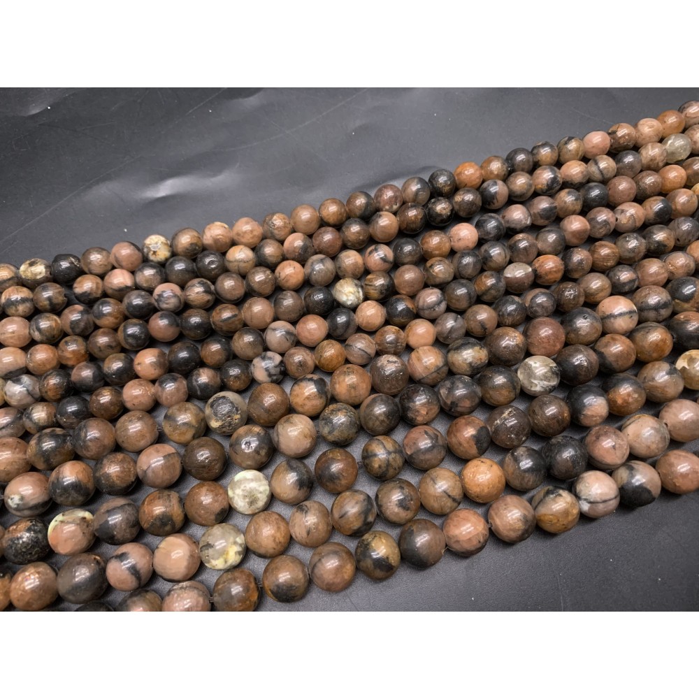 Каменные бусины, Андалузит ( Хиастолит ), шарик гладкий, 10 мм, длина нити 19 см