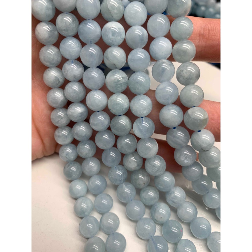 Каменные бусины, Берилл, голубой, Аквамарин, люкс, шарик гладкий, 10 мм, длина нити 38 см