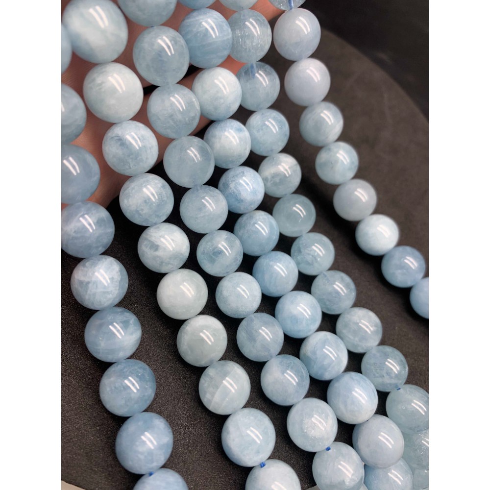 Каменные бусины, Берилл, голубой, Аквамарин, люкс, шарик гладкий, 12 мм, длина нити 19 см