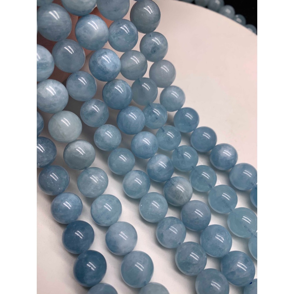 Каменные бусины, Берилл, голубой, Аквамарин, люкс, шарик гладкий, 12 мм, длина нити 38 см