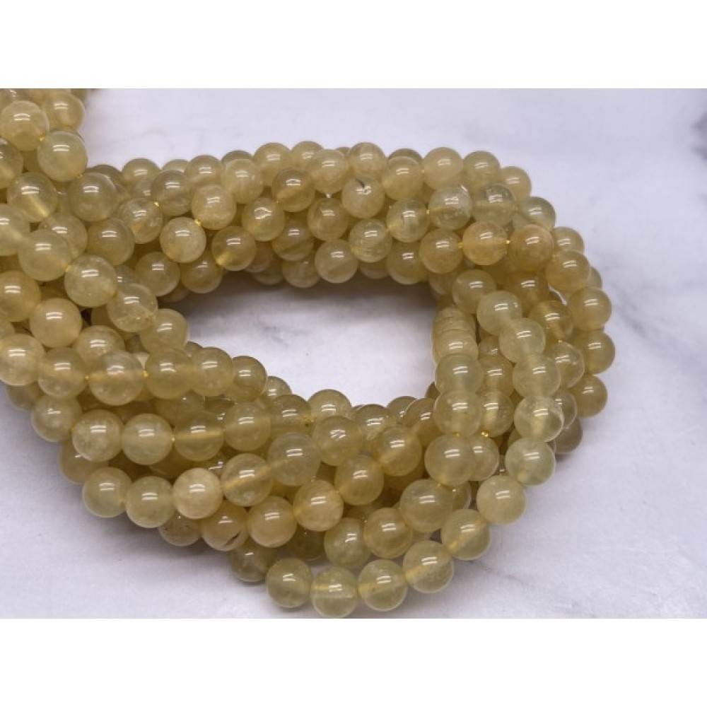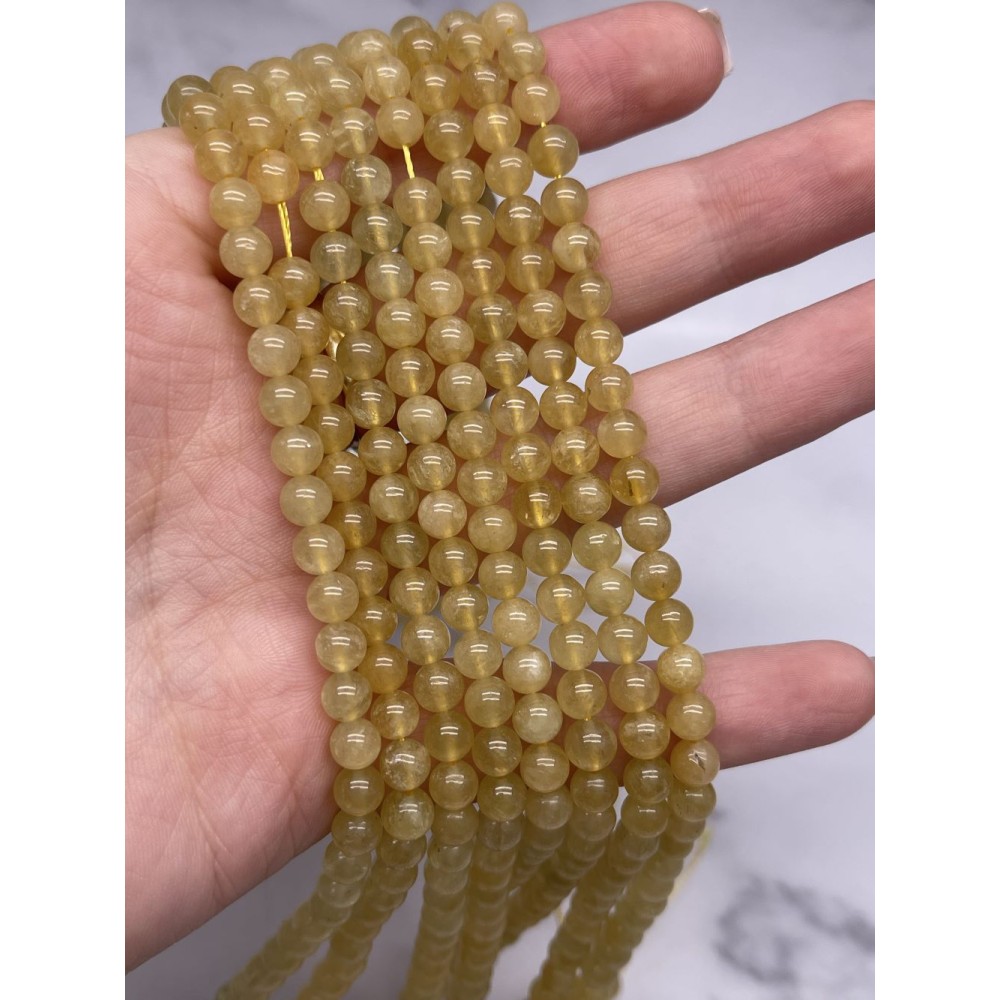 Каменные бусины, Берилл желтый, Гелиодор, шарик гладкий, 6 мм, нить 38 см