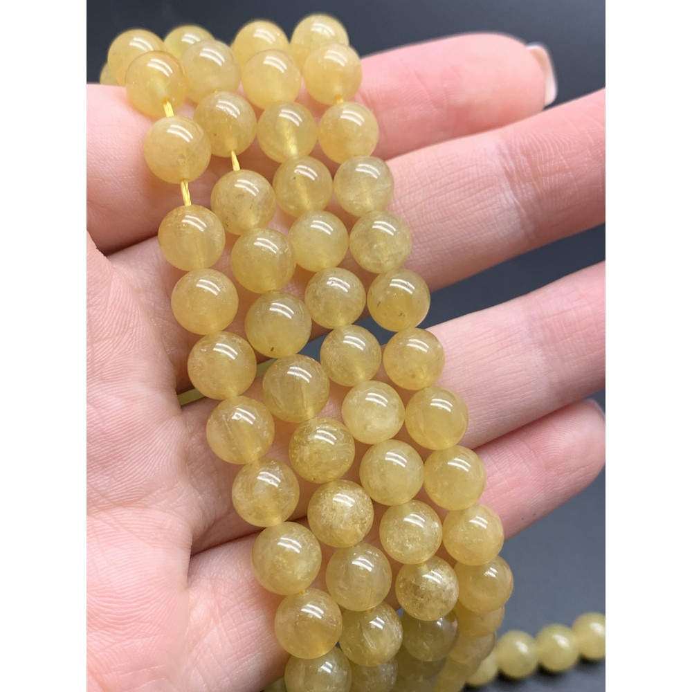 • Каменные бусины, Берилл желтый, Гелиодор, шарик гладкий, 8 мм, нить 38 см