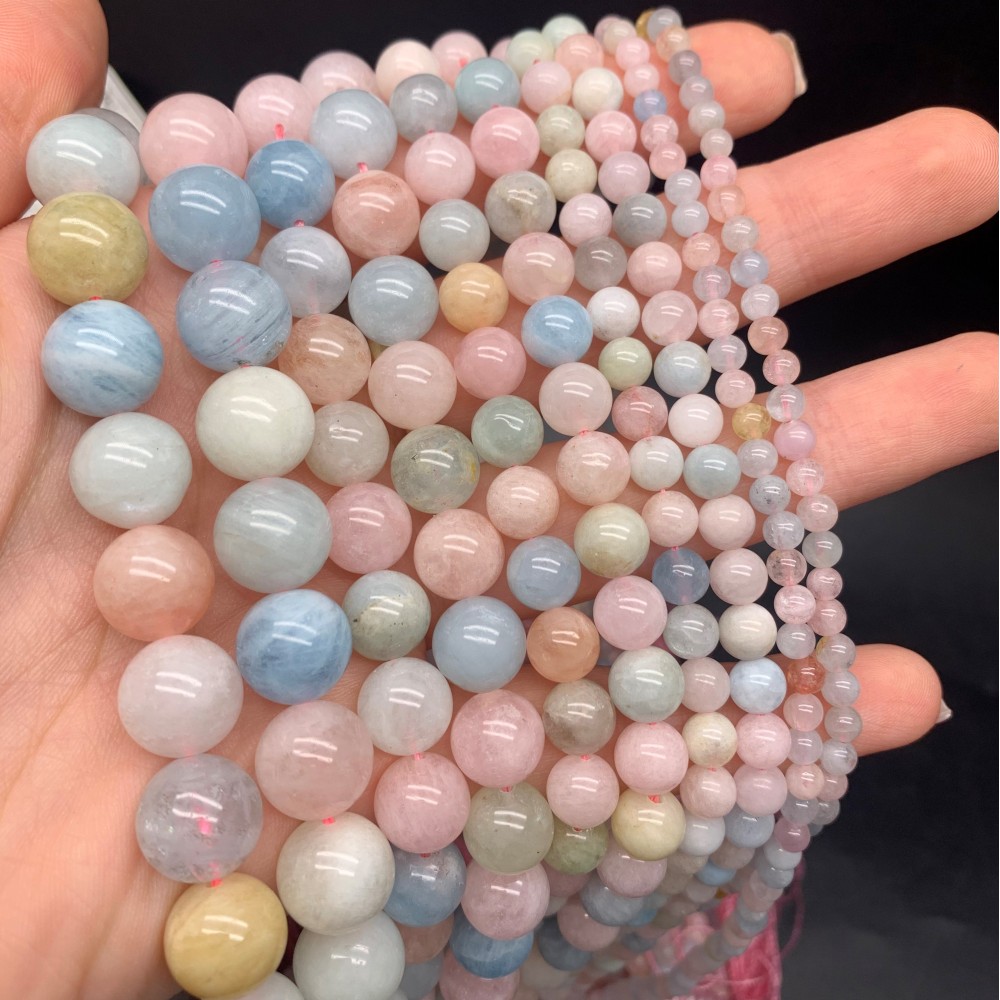• Каменные бусины, Берилловый Микс, шарик гладкий, 8 мм, длина нити 38 см