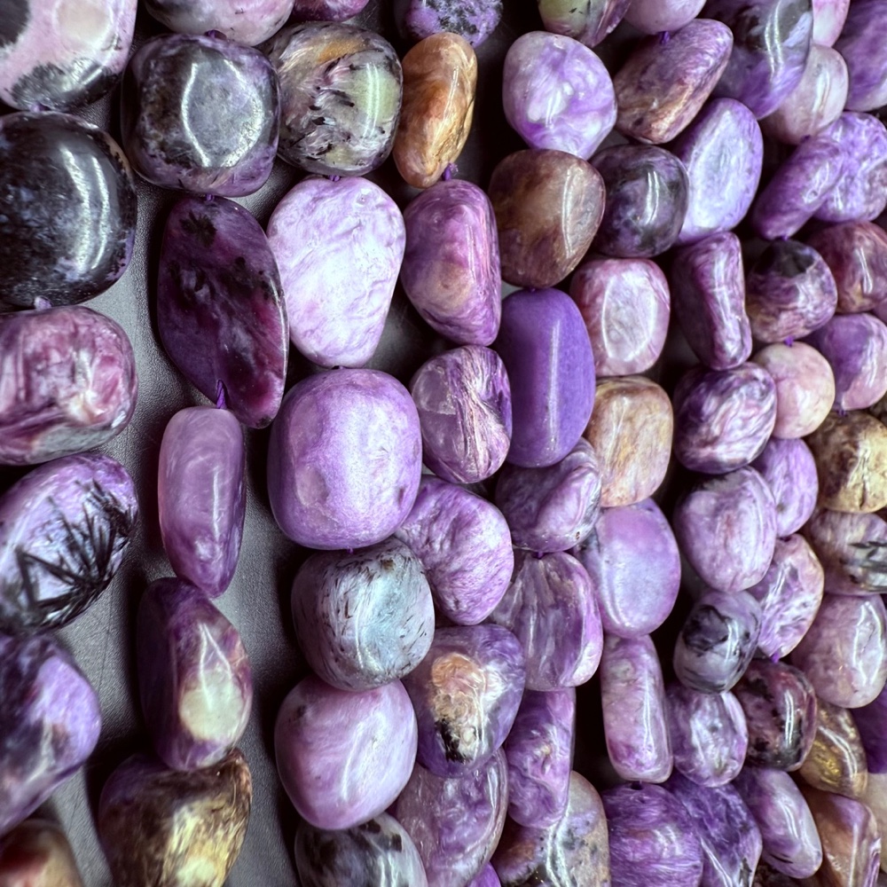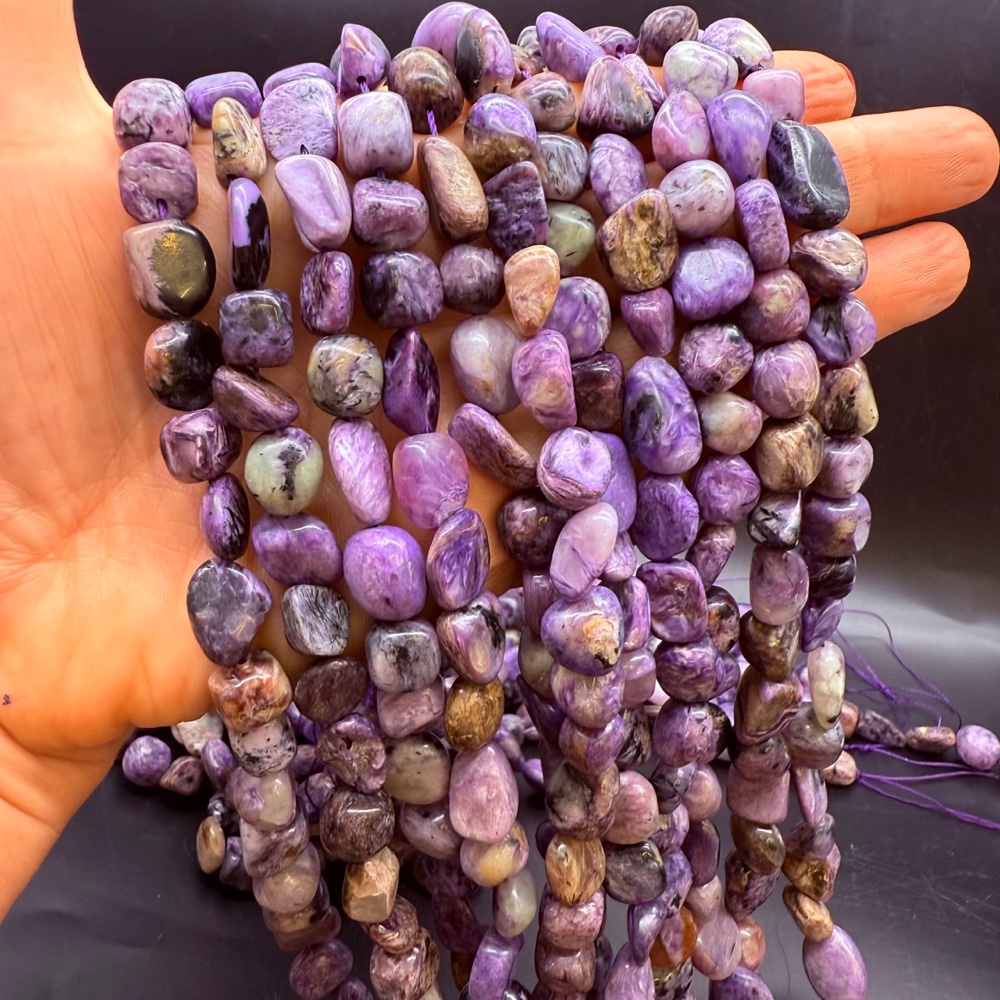 • Каменные бусины, Чароит, фриформы, 10-12 мм, длина нити 38 см