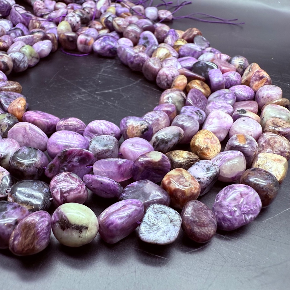 Каменные бусины, Чароит, фриформы, 10-12 мм, длина нити 38 см