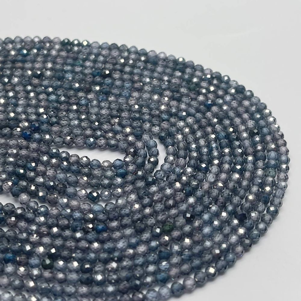 • Каменные бусины, Цирконий кубический, (т.н. Циркон), кристалл, цвет "синий графит", шарик огранка, 3 мм, длина нити 38 см