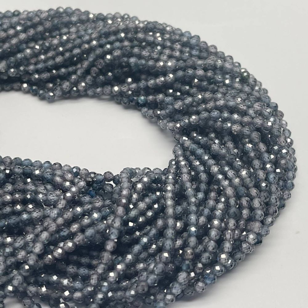 Каменные бусины, Цирконий кубический, (т.н. Циркон), кристалл, цвет "синий графит", шарик огранка, 3 мм, длина нити 38 см
