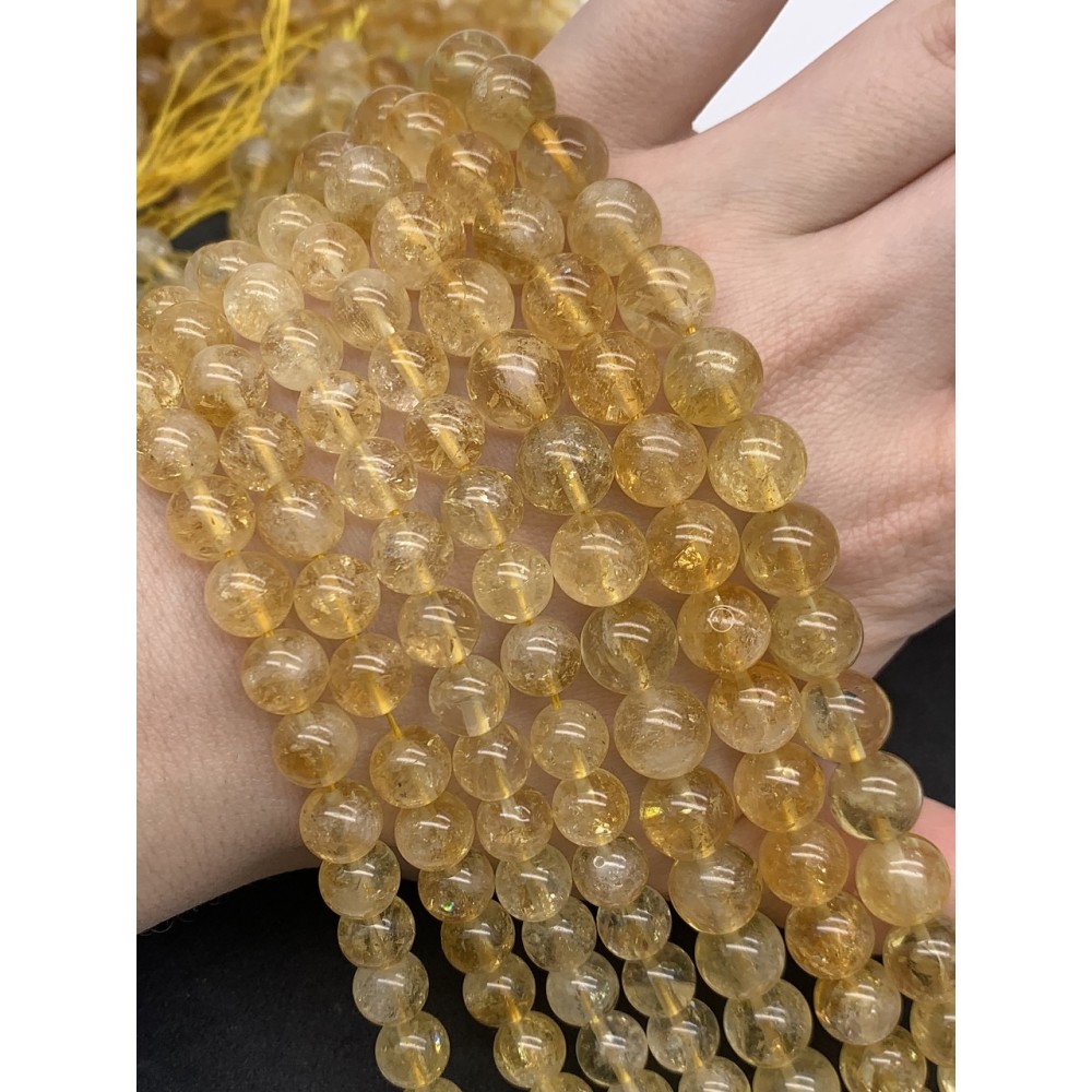 Каменные бусины, Цитрин, качество А, шарик гладкий, 10 мм, длина нити 19 см