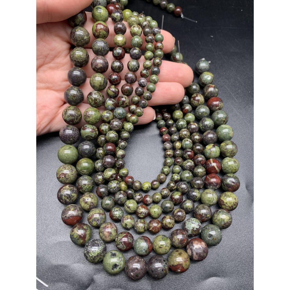 Каменные бусины, Гелиотроп, (Яшма "кровавая"), шарик гладкий, 12 мм, длина нити 38 см
