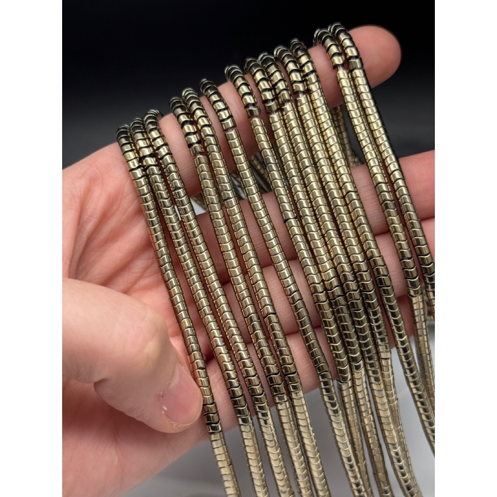 • Каменные бусины, Гематит синтетический, светлое золото, шайба-волна, размер 4х2 мм, нить 40 см