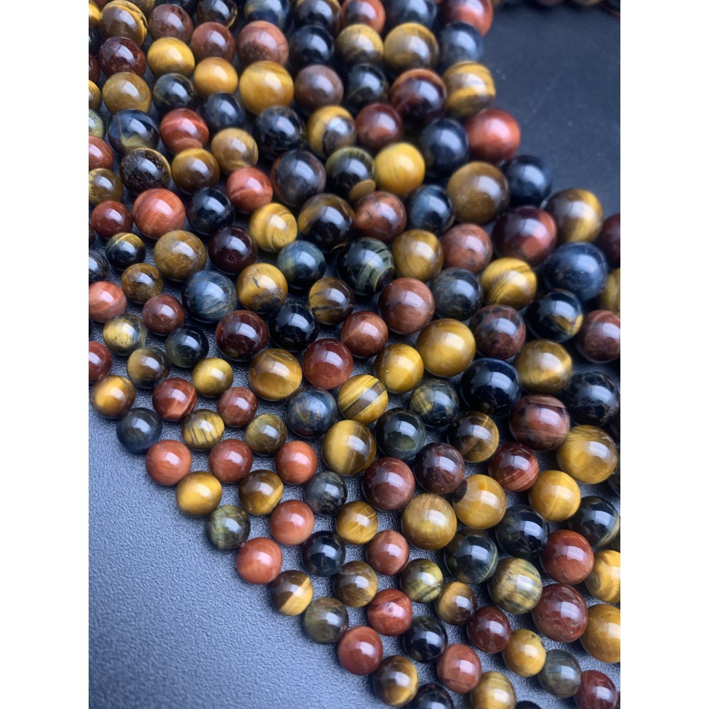 • Каменные бусины, Глазковый микс, (Тигровый глаз, бычий глаз, соколиный глаз), 6-6,5 мм, шарик гладкий, нить 38 см