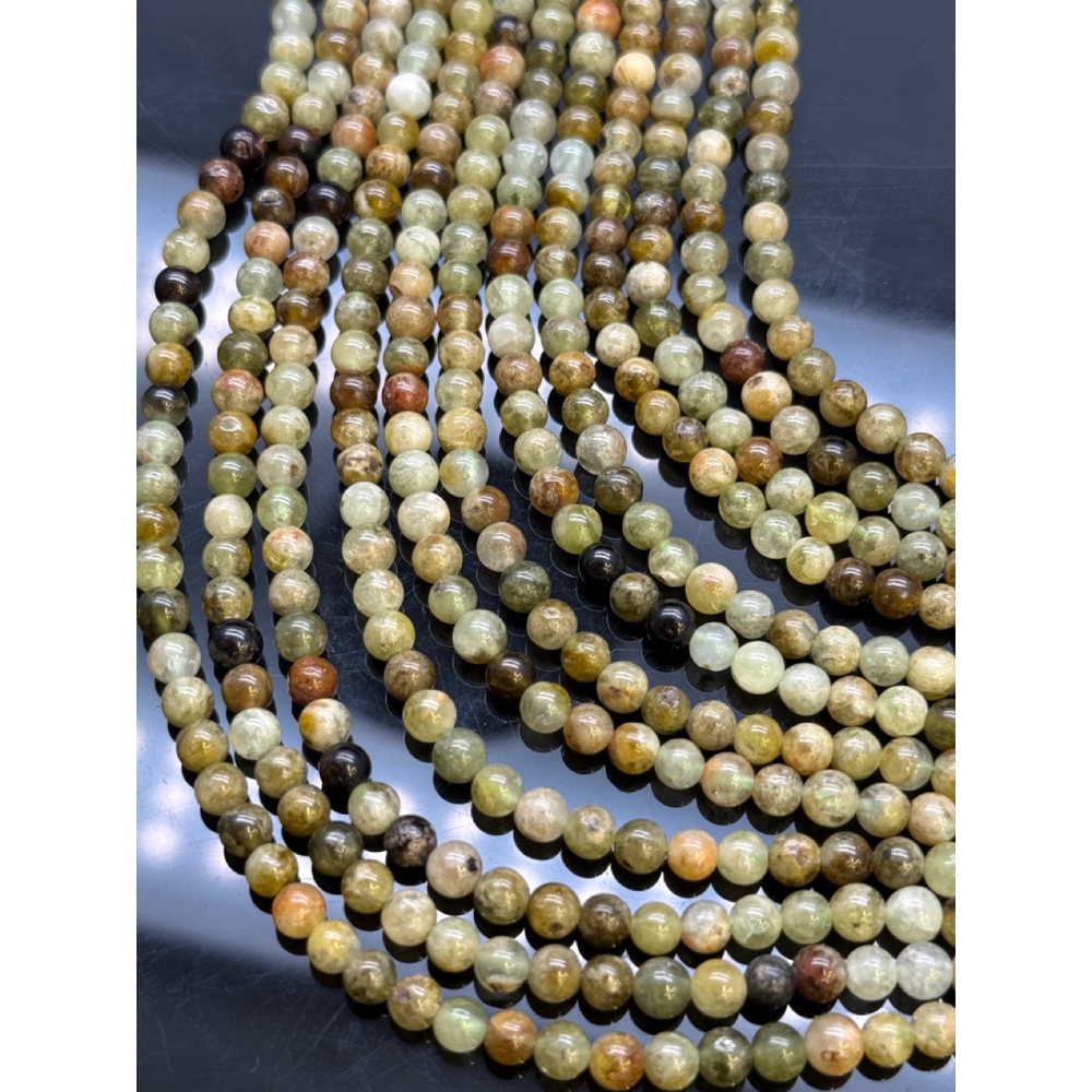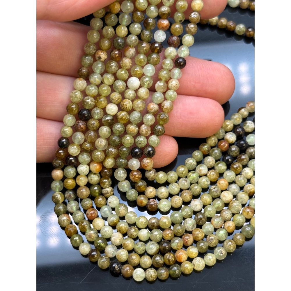 Теги: Каменные бусины, Гранат, зеленый, Гроссуляр, шарик гладкий, 4 мм, нить 38 см, 18236, Бусины гладкие