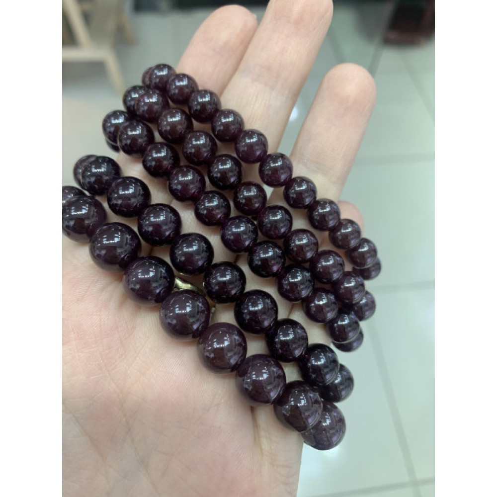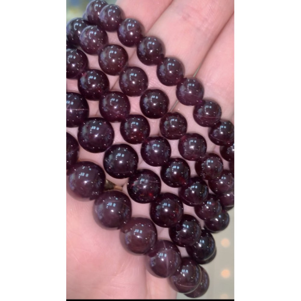 Технические характеристики Каменные бусины, Гранат, Звёздчатый, люкс (видны только при ярком свете и вспышке), шарик гладкий, 7-7,5 мм, браслет, 24 бусины, длина нити 19 см