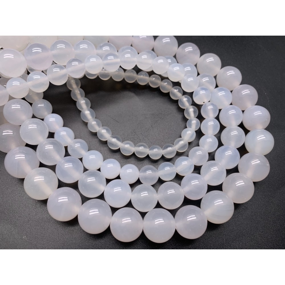 Теги: Каменные бусины, Халцедон, белый, шарик гладкий, 8 мм, длина нити 38 см, 13268, Бусины гладкие