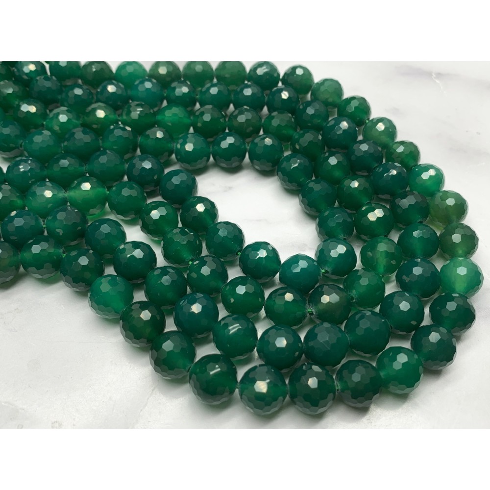 Теги: Каменные бусины, Халцедон, изумрудный, тонированный, шарик огранка, 10 мм, длина нити 38 см, 12952, Бусины в огранке
