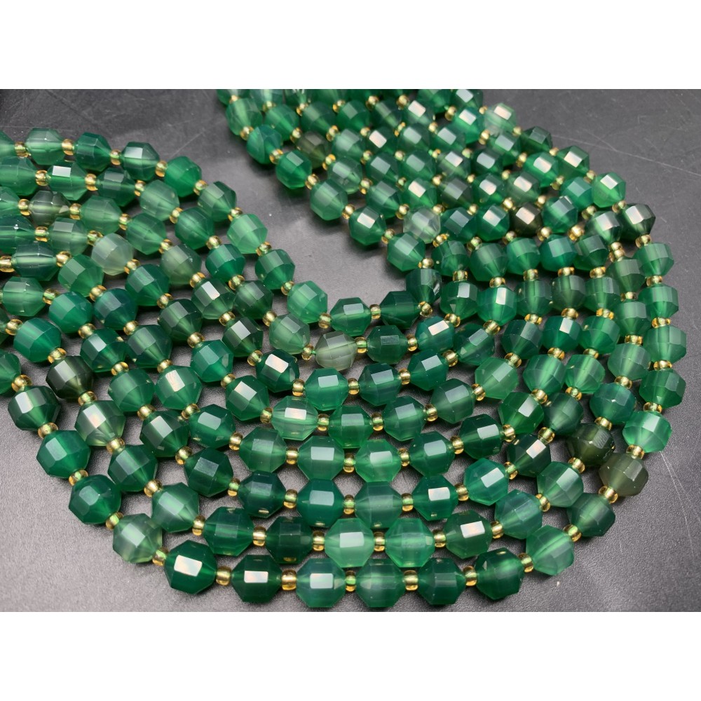 Каменные бусины, Халцедон, изумрудный, тонированный, ювелирная огранка, 8х7 мм, длина нити 38 см