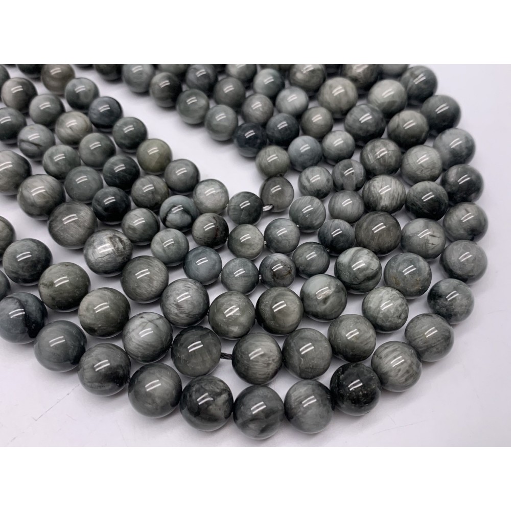 Каменные бусины, Хризоберилл, Кошачий глаз, серый, шарик гладкий, 10 мм, длина нити 38 см
