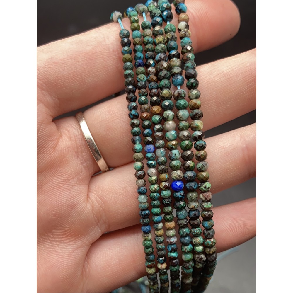 • Каменные бусины, Хризоколла, рондель, огранка, 2х3 мм, длина нити 38 см