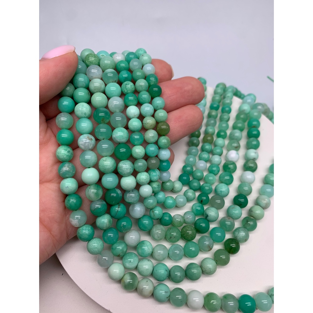Каменные бусины, Хризопраз, экстра качество, люкс, шарик гладкий, 7,5 мм, длина нити 38 см 0 3050 ₽