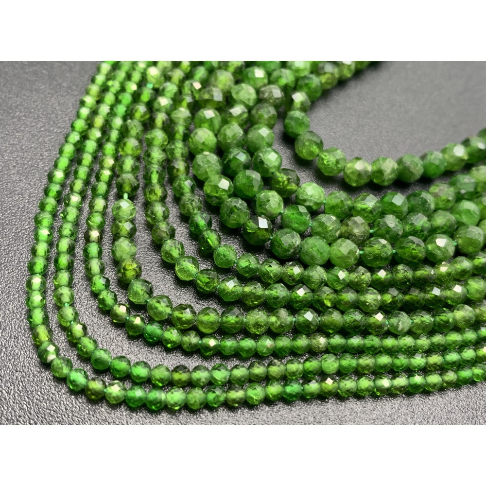 Каменные бусины, Хромдиопсид, люкс, шарик огранка, 3-3,5 мм, длина нити 38 см