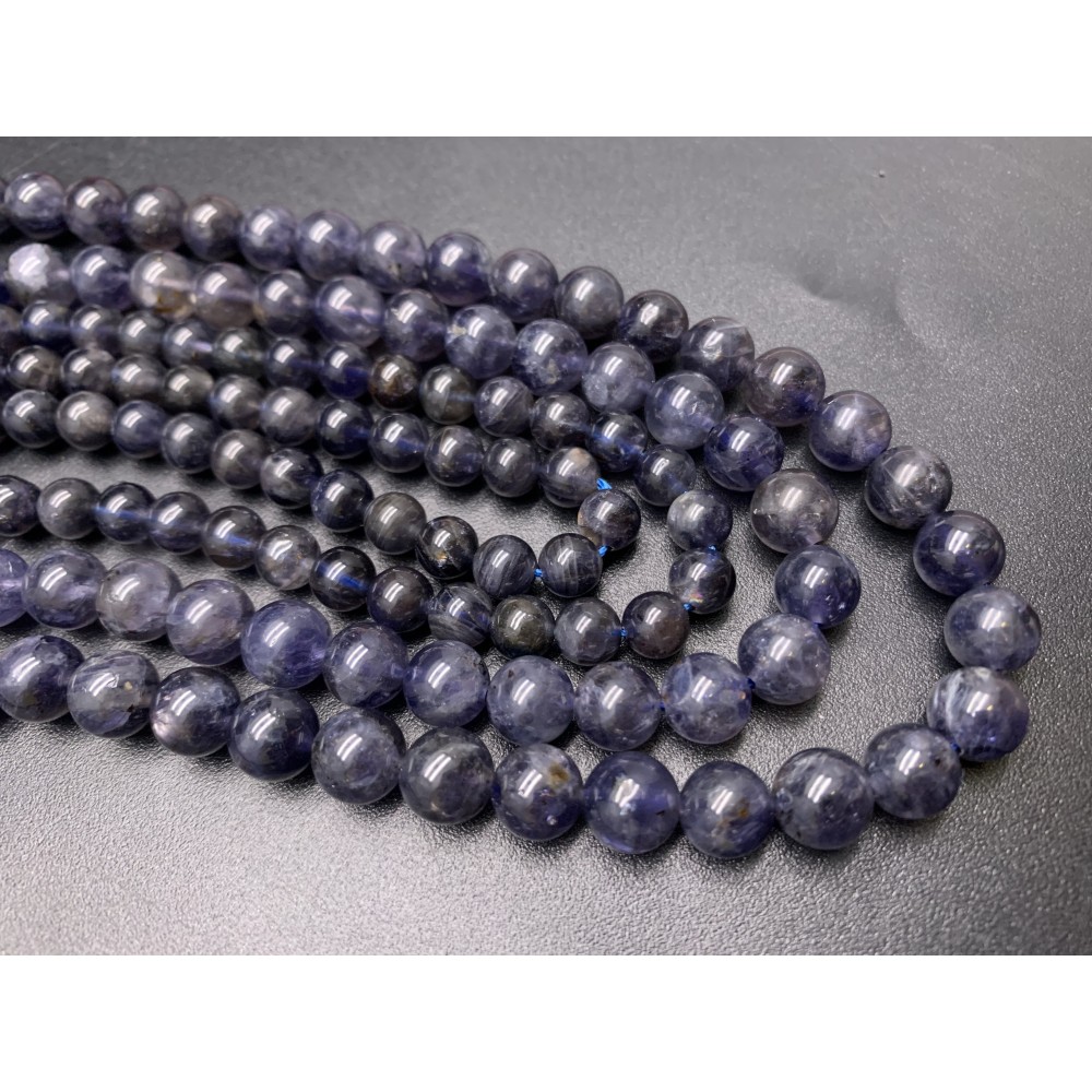 Каменные бусины, Иолит (Водяной Сапфир), шарик гладкий, 5,5 - 6 мм, длина нити 38 см