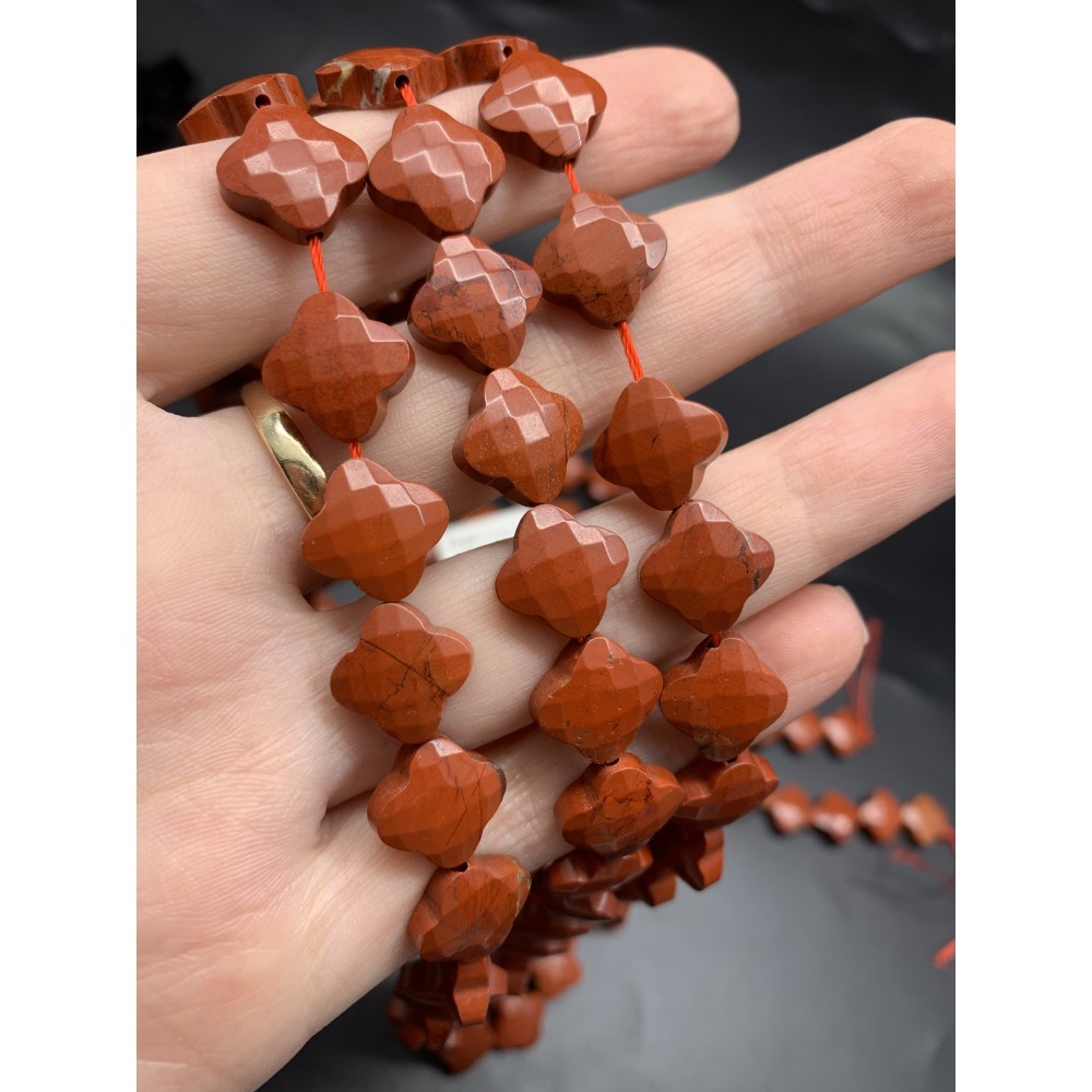 Каменные бусины, Яшма, красная, клевер, в огранке, 13х6 мм, длина нити 38 см, 30 бусин 0 1680 ₽