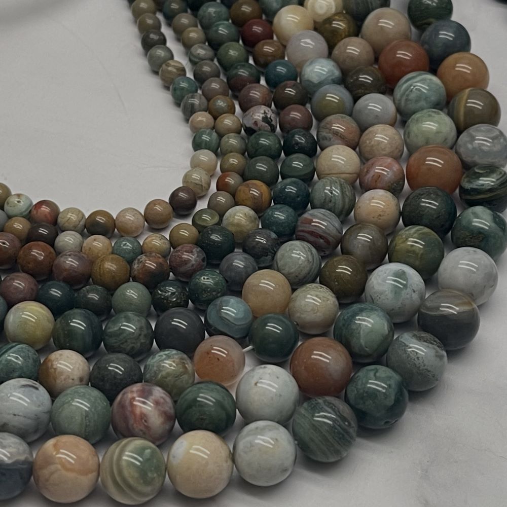 • Каменные бусины, Яшма, зелёная, светлая, шарик гладкий 10 мм, длина нити 38 см