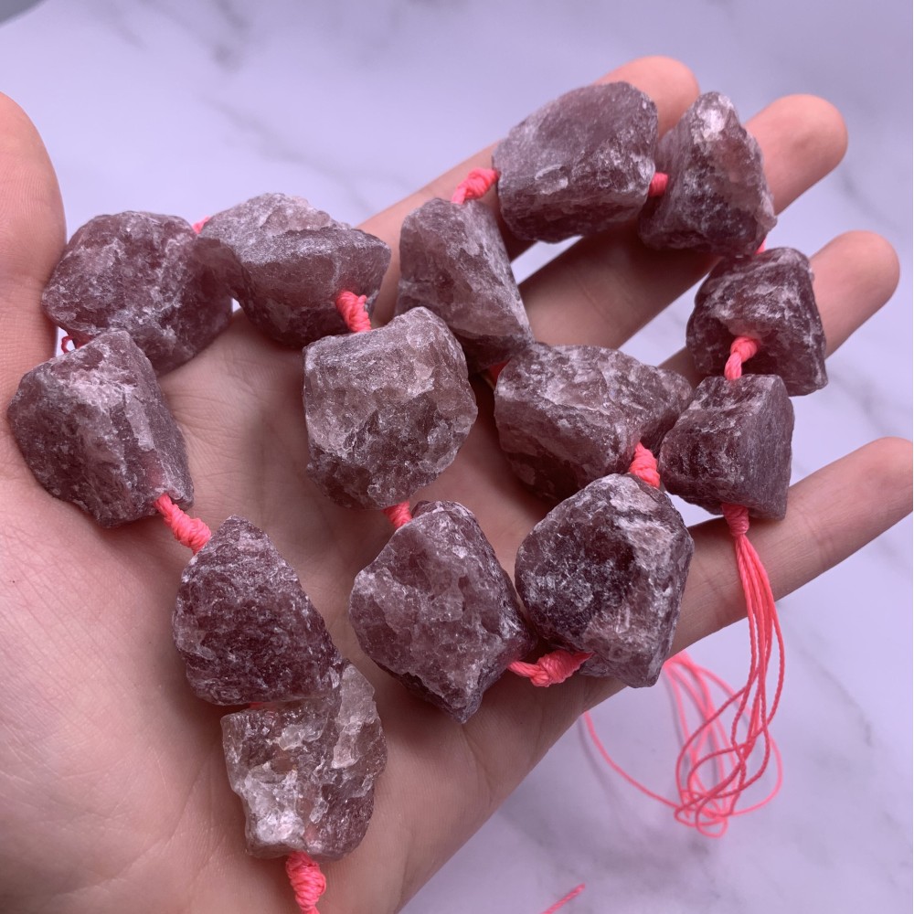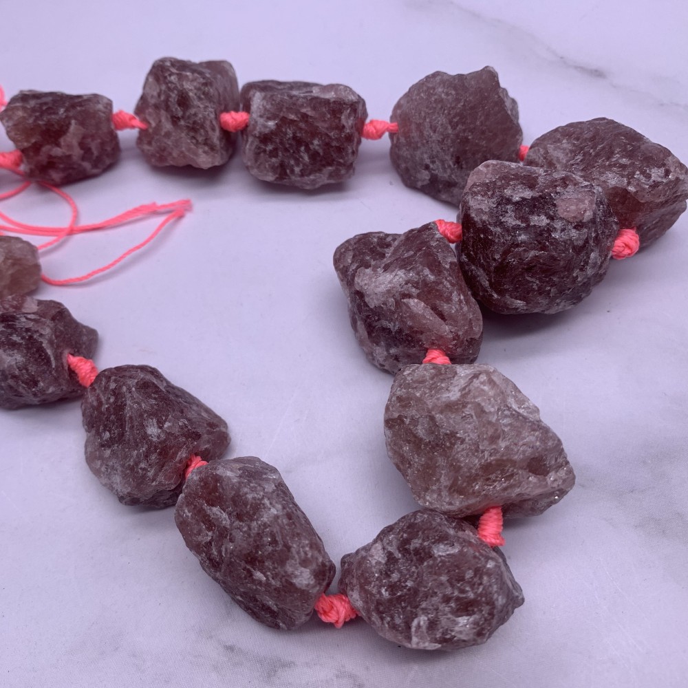 • Каменные бусины, Клубничный Кварц, не обработанный, фриформы, 20-28 мм, длина нити 19 см, 7 шт