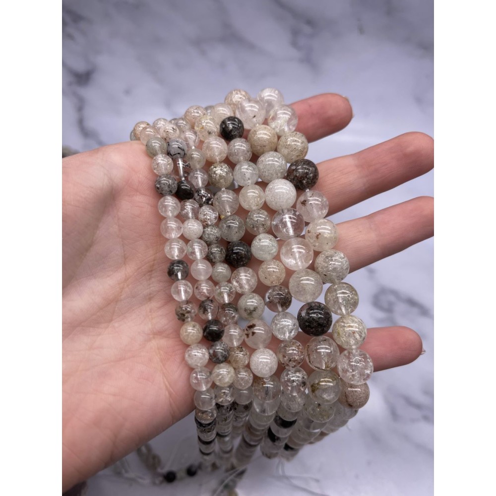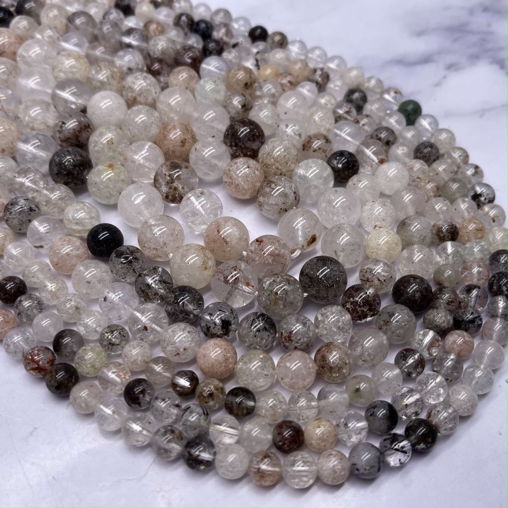 • Каменные бусины, Кварц фантомный, лодолит, шарик гладкий, 8,5 мм, длина нити 38 см