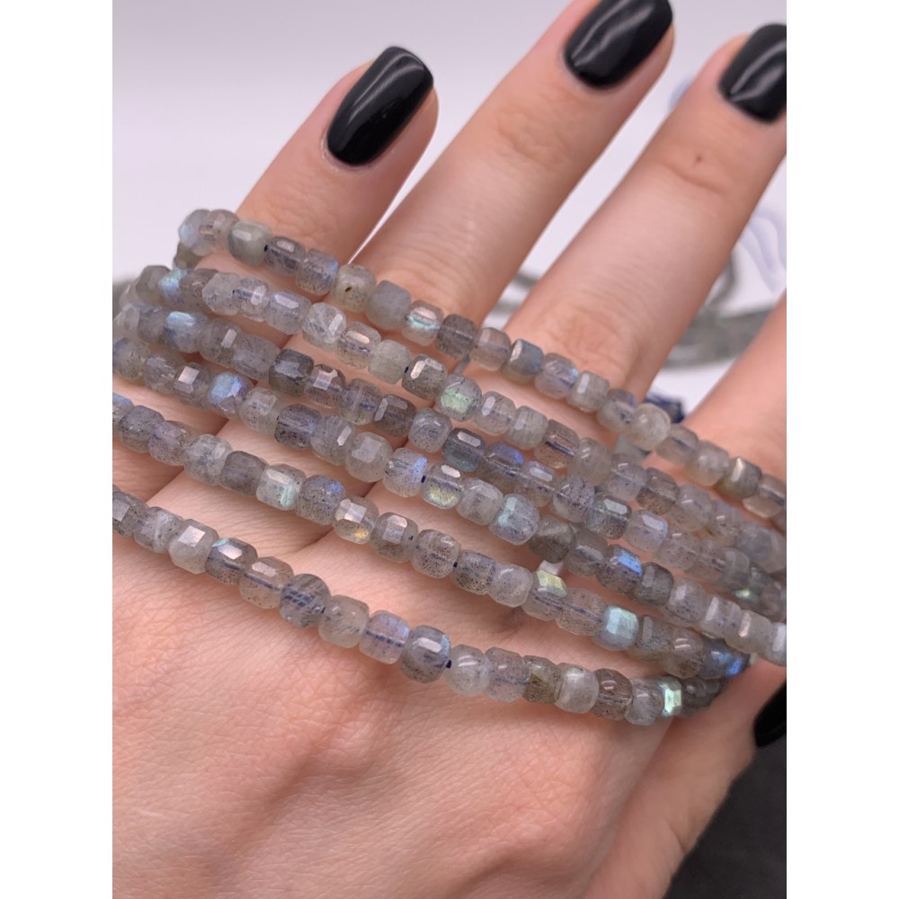 Теги: Каменные бусины, Лабрадор, кубик, зеркальная огранка, 4, 5х4, 5 мм, длина нити 38 см, 19871, Кубики