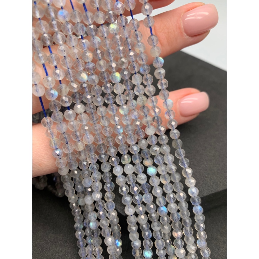 • Каменные бусины, Лабрадор, шарик огранка, 4 мм, длина нити 38 см
