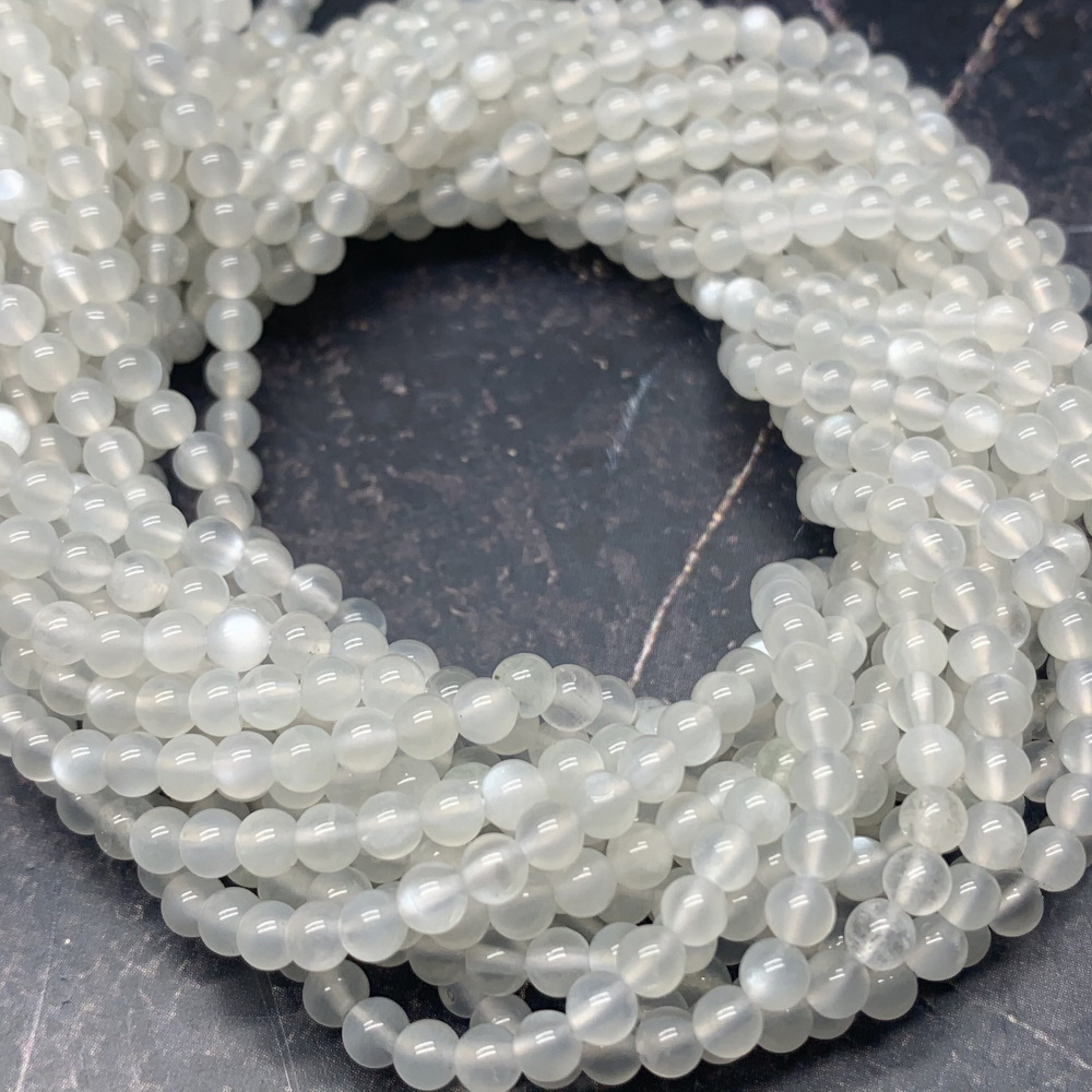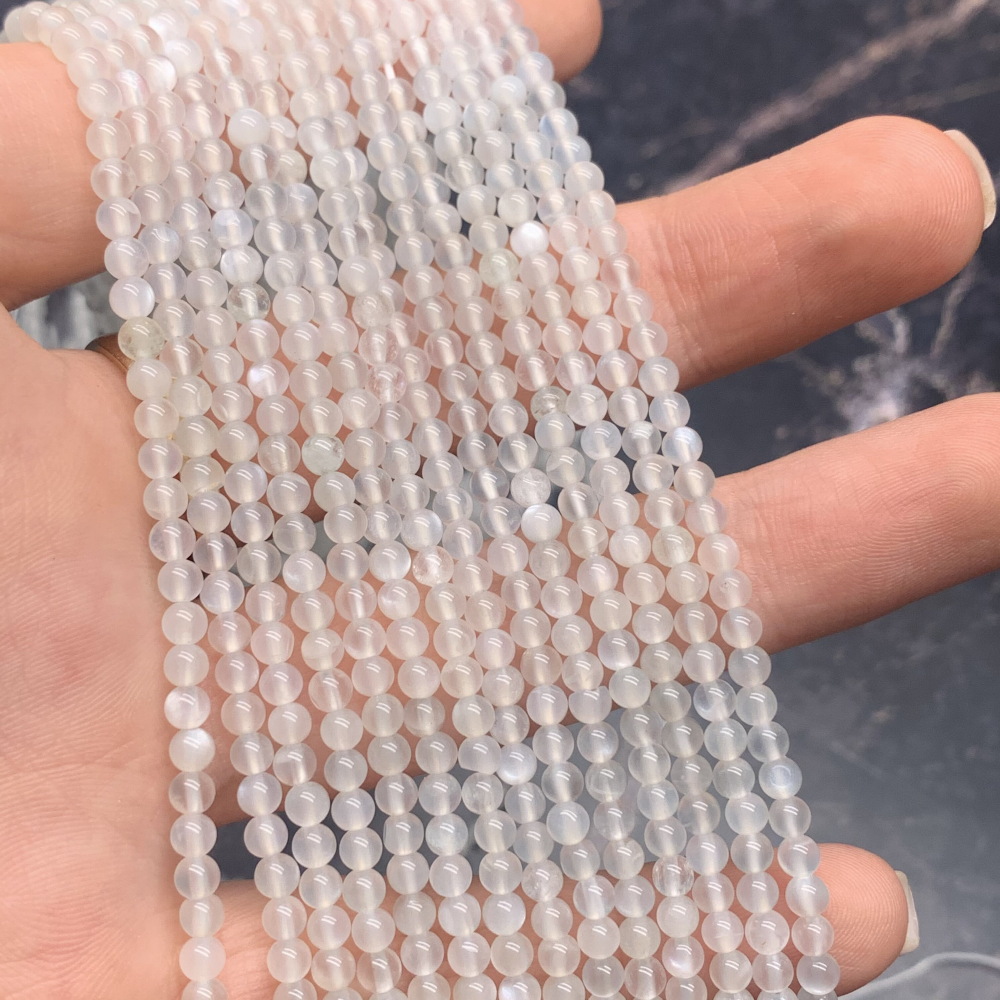 • Каменные бусины, Лунный камень, Беломорит, шарик гладкий, 3 мм, длина нити 38 см